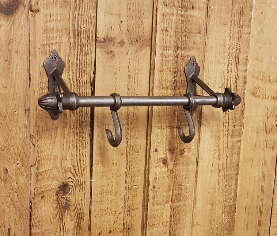 Hook Rail Cast antique Iron (2 Hooks) with Finial 340mm