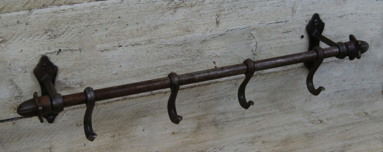 Hook Rail Cast Antique Iron (4 Hooks) with Finial Ends 520mm