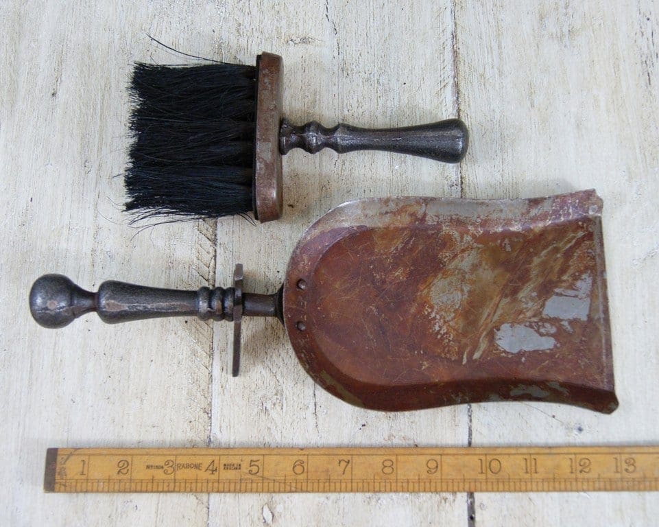 Brush & Dust Pan Set Cast Handle antique Iron 12″