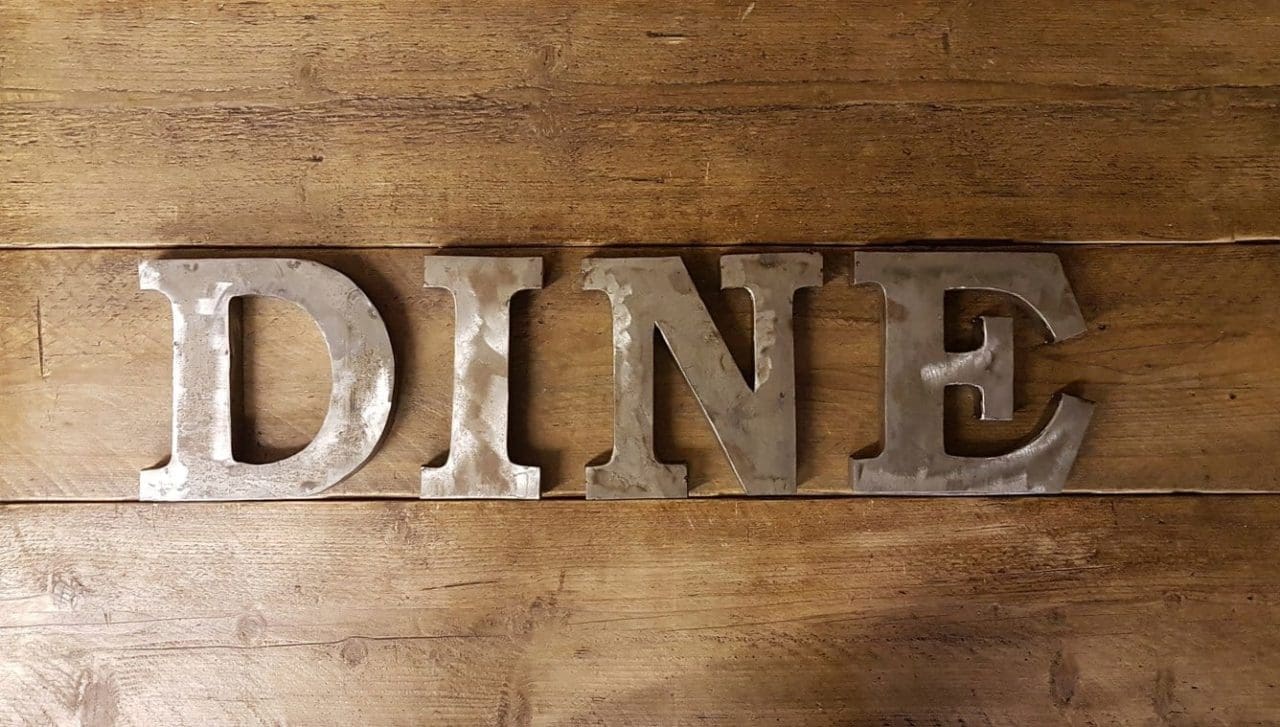 This is a dine sign, produced here in vintage antique iron, large in size and ideal for creating a nostalgic centrepiece in the home. It is part of our wide cast iron letter/number range.