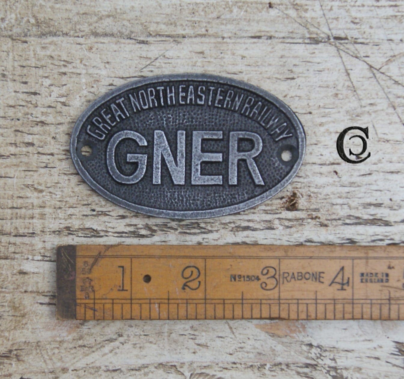 Introduce a touch of railway heritage to your space with the “Oval GNER” plaque. This finely crafted piece, measuring 50mm x 85mm, is made from durable antique cast iron, providing an authentic and robust feel. The oval shape and classic design proudly display the “GNER” inscription, reminiscent of the Great North Eastern Railway era.