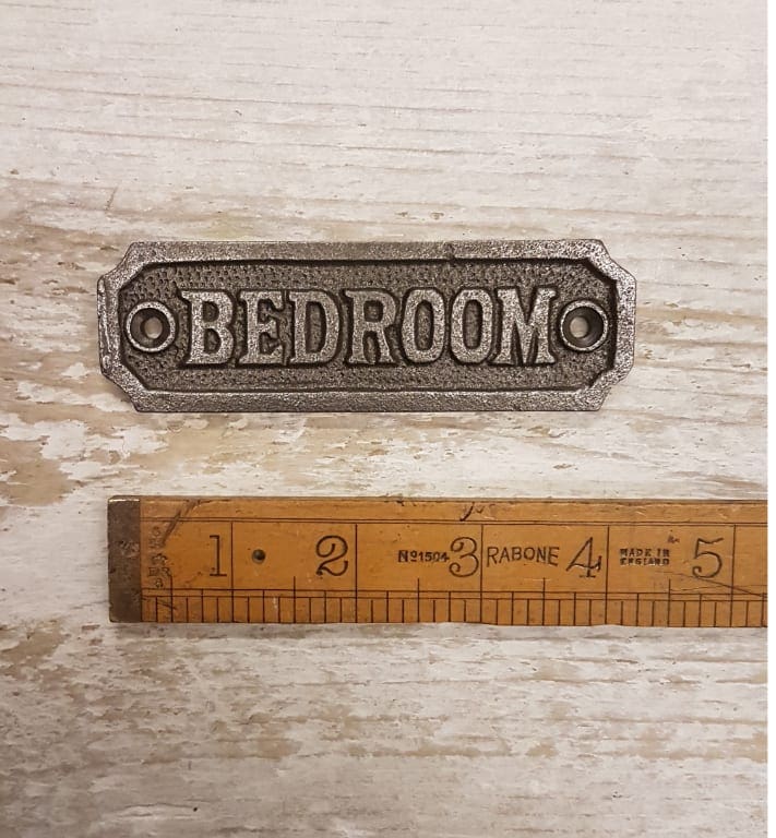 This Bedroom Plaque, crafted from solid cast iron, combines durability with traditional style. Measuring 105mm x 33mm, it features a classic design ideal for vintage-inspired interiors or heritage properties. The plaqueโs antique finish enhances its character, making it a tasteful and practical addition to doors and entryways.