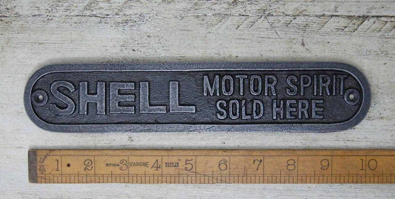 Embrace the heritage and timeless appeal of Shell with our Plaque which contains the message “MOTOR SPIRIT SOLD HERE”, where classic design meets enduring craftsmanship for a piece that celebrates the rich history of motoring and fuelling innovation.
